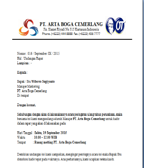 Surat undangan resmi adalah jenis surat undangan yang dibuat oleh lembaga atau organisasi yang akan ditujukan kepada lembaga atau organisasi dan perorangan lainnya dengan bahasa yang baku. Surat undangan resmi biasanya dibuat oleh suatu instansi yang berisi ajakan kepada instansi lainnya untuk menghadiri suatu acara jika kamu ingin membuat surat undangan resmi, tak perlu bingung. Surat undangan resmi merupakan surat yang dibuat oleh sebuah instansi atau lembaga legal, yang dikirimkan untuk lembaga lain ataupun perseorangan. Contoh surat undangan resmi mengahdiri acara dibuat dan ditujukan bisa kepada individu atau sebuah kelompok dalam perusahaan sehingga memang biasanya ketua atau kepala sekolah yang di. Dengan lebih dari 100 pilihan layout berbeda, anda tak akan pernah kehabisan inspirasi!